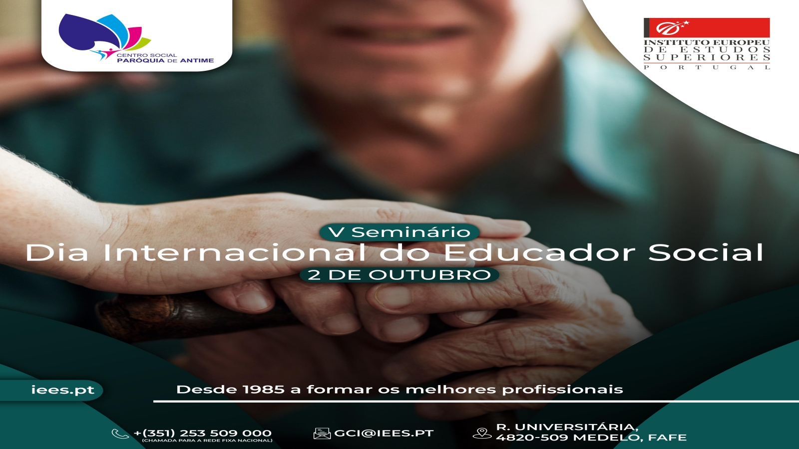 A Escola Superior de Educação de Fafe (ESEF) do Instituto Europeu de Estudos Superiores (IEES), em parceria com o Centro Social da Paróquia de Antime, promove no próximo dia 2 de outubro de 2025, o V Seminário do Dia Internacional do Educador Social, subordinado ao tema “Envelhecer com Dignidade: O Compromisso Ético e Profissional na Intervenção Socioeducativa — 25 Anos de Caminho Partilhado com a Comunidade”.