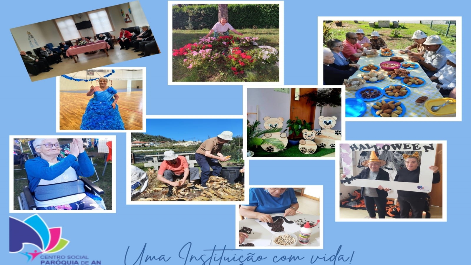 Aos nossos utentes juntaram-se colaboradores e funcionários, os elementos da direção, assim como o Sr. Presidente da Câmara, o Sr. Presidente e a Secretária da Junta e outros amigos da nossa instituição, como o Eng. Tiago Ribeiro, o Arq. Gil Soares e o Fotógrago Jorge Oliveira.